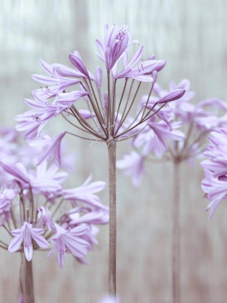 Dans cette image de rêve, de tendres fleurs violettes s'étendent dans une lumière douce, entourées d'un voile brumeux de sérénité. Les teintes subtiles des fleurs et leur mise au point délicate suggèrent un monde de tranquillité et de beauté naturelle.