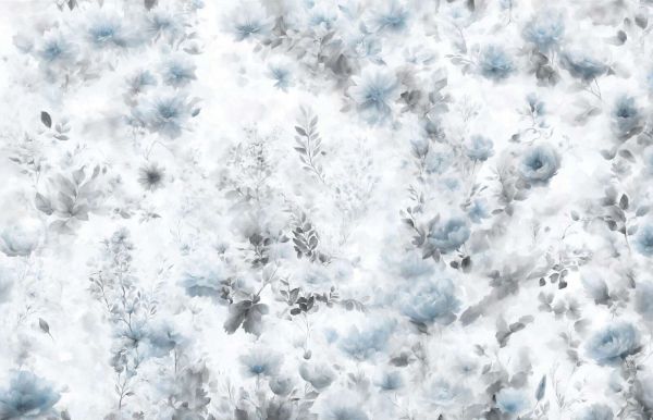 Dans ce design, des fleurs dans des teintes de bleu ciel clair à indigo doux ornent l'arrière-plan, qui possède également un éclat aquarelle. Les coups de pinceau transparents confèrent à l'ensemble un caractère serein et presque éthéré. Les couleurs fraîches et rafraîchissantes créent une atmosphère calme qui invite à la détente et aux rêveries.