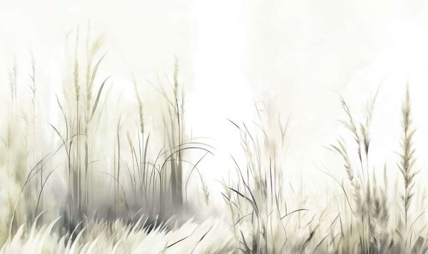 Des herbes plumeuses ondulantes dans des teintes vertes douces créent une apparence fraîche et naturelle. Les effets aquarelle et les coups de pinceau subtils apportent une atmosphère légère et apaisante, parfaite pour un intérieur équilibré.