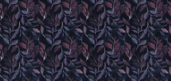 Motif de feuilles violettes dans différentes nuances sur un fond sombre.