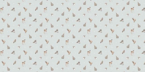 Un motif apaisant avec des animaux de la forêt tels que des cerfs, des hiboux, des hérissons, des lapins et des ratons laveurs sur un fond bleu glacier frais. La combinaison d'illustrations d'animaux naturels et de couleurs douces crée un ensemble rêveur et léger.