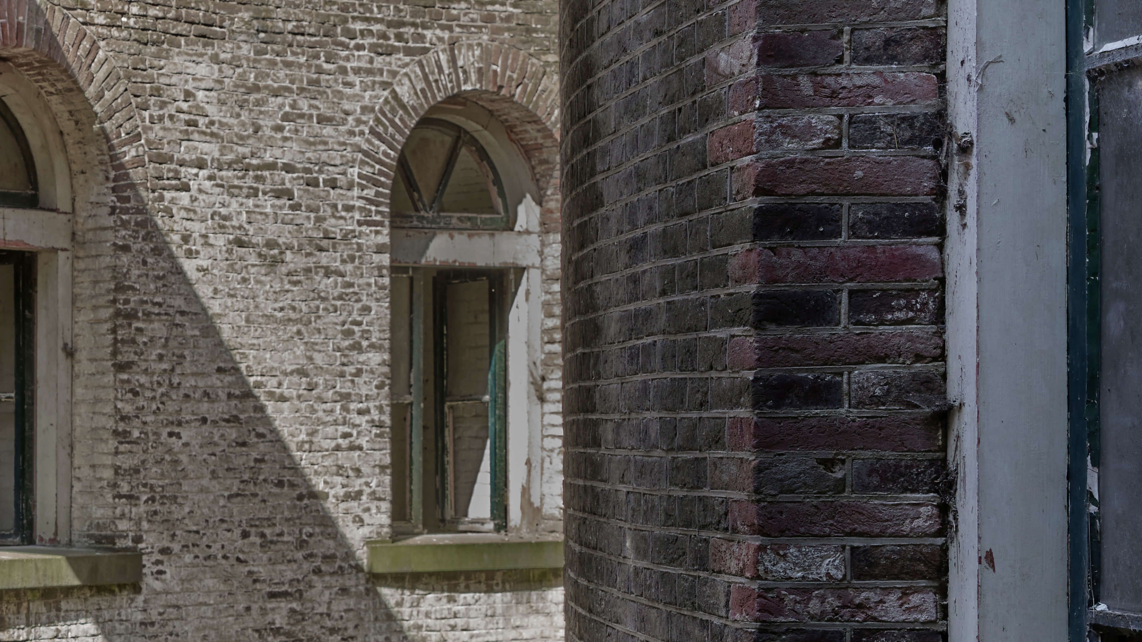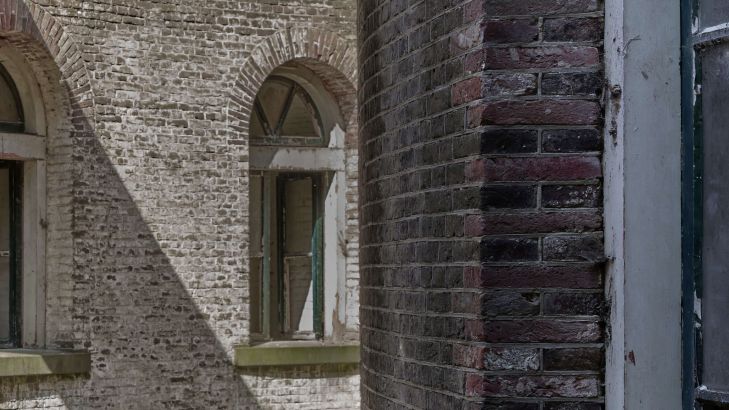 Ancien bâtiment ensoleillé avec plusieurs belles arches en pierre