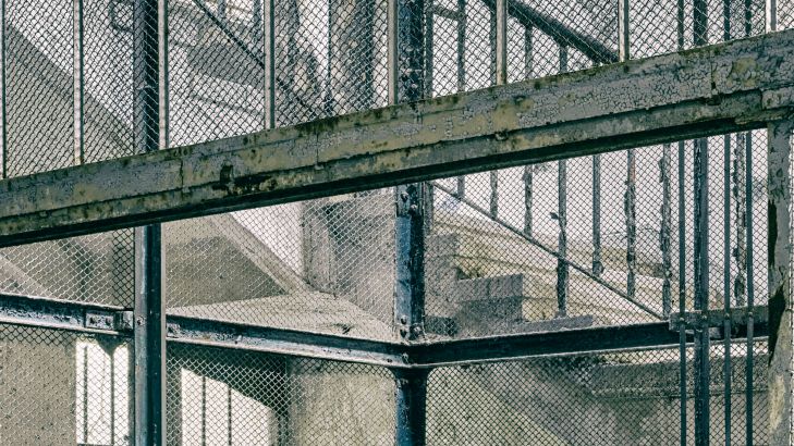 Ancien escalier et cage d'ascenseur en différents matériaux