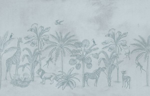 Papier Peint Panoramique Animal jungle bleu