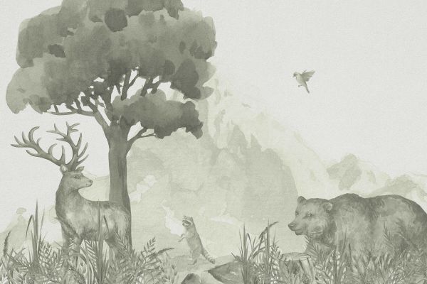 Papier Peint Panoramique Animaux de la forêt en vert d'eau