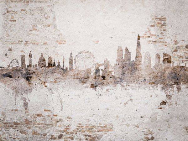 Une silhouette aquarelle de Londres dans un style urbain. La silhouette est disponible avec différents arrière-plans.