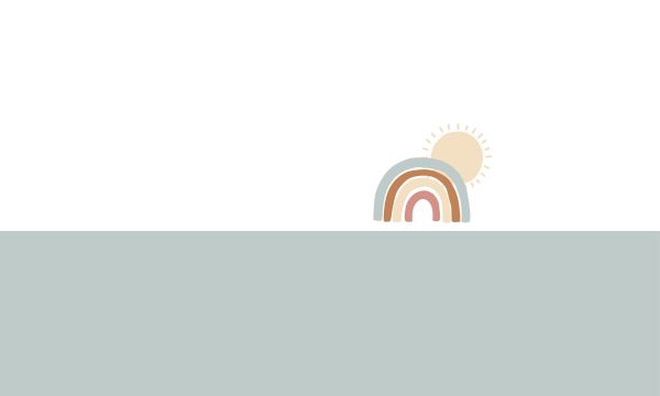 Fond gris-bleu avec un petit arc-en-ciel de couleur pastel et le soleil à droite.