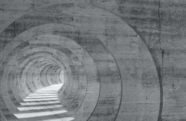 Un tunnel 3D en béton constitué de plusieurs arches détachées.