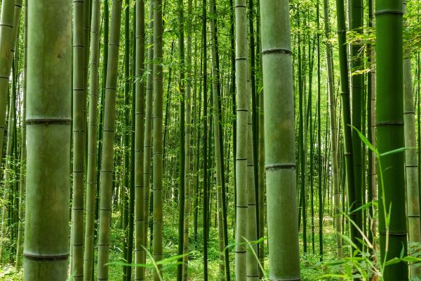 Une photo où vous vous retrouvez au milieu d'une magnifique forêt de bambous verts.