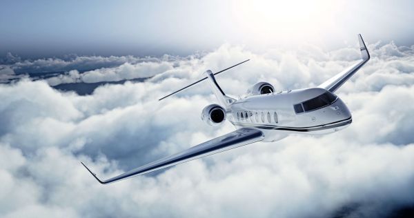 Un avion privé de luxe qui vole au-dessus des nuages.