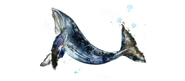 Baleine à bosse d'aquarelle à la nage en différents matériaux