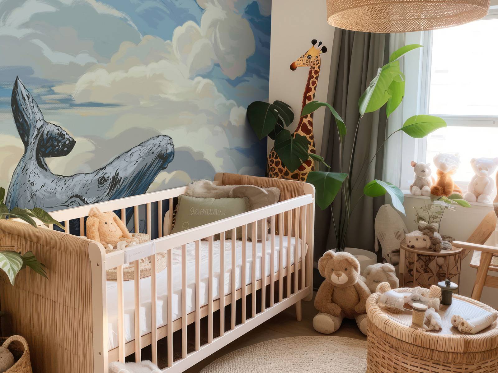 Baleine volant à travers les nuages. Avec ce papier peint, mettez le paquet pour obtenir une pièce magnifique.