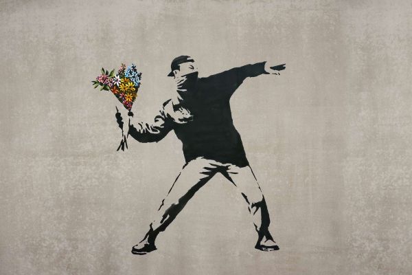 Papier Peint Panoramique Banksy - Flower thrower, soft concrete