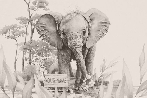 Papier Peint Panoramique Bébé éléphant dans la jungle beige