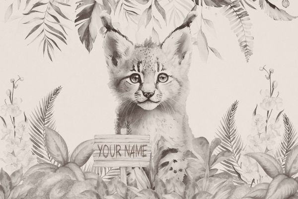 Papier Peint Panoramique Bébé lynx dans la jungle beige