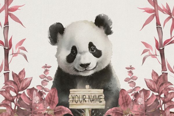 Papier Peint Panoramique Bébé panda dans la jungle rose