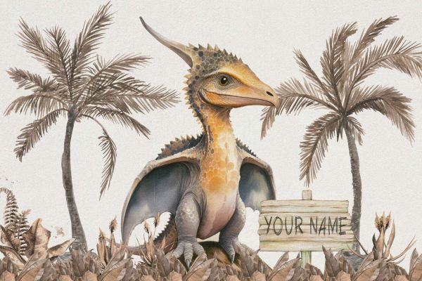 Un bébé ptéranodon dans une jungle couleur taupe. Disponible aussi avec le nom de votre enfant !