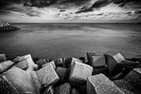 Sur la côte de la Zélande, à Cadzand Bad, une magnifique marina a été construite. Il est entouré de quais en béton avec des blocs de béton inclinés pour protéger les quais.