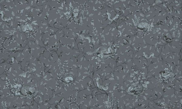 Ce design rêveur donne vie à un monde forestier calme dans des tons de bleu atmosphérique. Sur un fond bleu-gris apaisant, des branches de chêne gracieuses se déploient avec des glands, des feuilles et des fleurs, où divers animaux forestiers ont trouvé leur place. Des lapins endormis se reposent sur des lits de feuilles, des écureuils grimpent joyeusement dans les branches, des chouettes montent la garde tranquillement et de petits oiseaux dorment en sécurité dans leurs nids. Des papillons subtils volettent partout et de petits détails forestiers sont à découvrir, comme des champignons, des escargots et des abeilles. Les couleurs sont maintenues ton sur ton, avec des bleus grisâtres doux qui s'harmonisent parfaitement entre eux. Cela crée une ambiance sereine particulière, idéale pour une chambre d'enfant minimaliste ou une chambre moderne et apaisante. Les couleurs fraîches apportent fraîcheur et calme, tandis que le motif détaillé conserve une atmosphère chaleureuse et accueillante. Grâce aux nuances subtiles, l'ensemble n'est jamais chargé, mais reste visuellement captivant. La composition est ouverte et aérée, ce qui permet au design de bien s'intégrer même sur de grandes surfaces. Le style illustratif - avec des lignes fines et des ombres douces - rappelle les livres d'images classiques, et invite à rêver dans un monde silencieux plein de magie forestière. Parfait à combiner avec des matériaux naturels tels que le bois gris, le lin clair ou des accessoires en feutre. Pensez à un berceau avec une literie bleu doux, des rideaux couleur sable ou un plaid en laine gris argenté. Également beau en combinaison avec du bleu nuit ou du bleu pastel clair pour une ambiance tonale qui respire le calme et la sécurité.