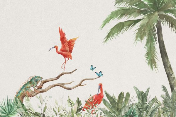Papier Peint Panoramique Branche avec des animaux de la jungle