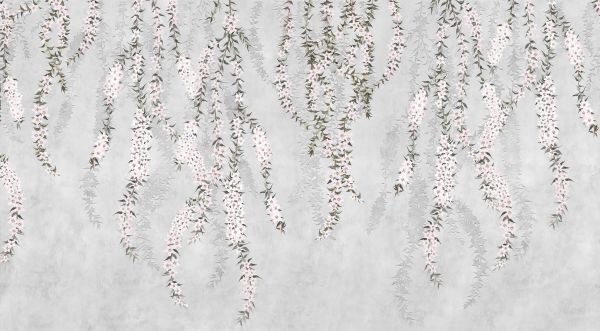 Papier Peint - Branches de fleurs sur un mur en béton bleu clair