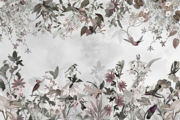 Ce magnifique design combine des éléments naturels tels que des fleurs épanouies, des oiseaux gracieux et un fond doux pour créer une atmosphère sereine et enchanteresse. Un ensemble harmonieux est créé avec une palette de nuances pastel et naturelles, comme le vert tendre, le rose clair et les tons terre subtils. Les détails des oiseaux flottants et des motifs botaniques ajoutent une sensation dynamique mais discrète. Idéal pour un salon ou une chambre où calme et élégance sont recherchés, ou pour donner un look unique à un espace bureau. Combinez ce design avec des meubles et des accessoires neutres, tels que des accents de bois ou des tissus en lin, pour accentuer les éléments naturels. Cette composition intemporelle convient aussi bien aux intérieurs modernes que classiques.