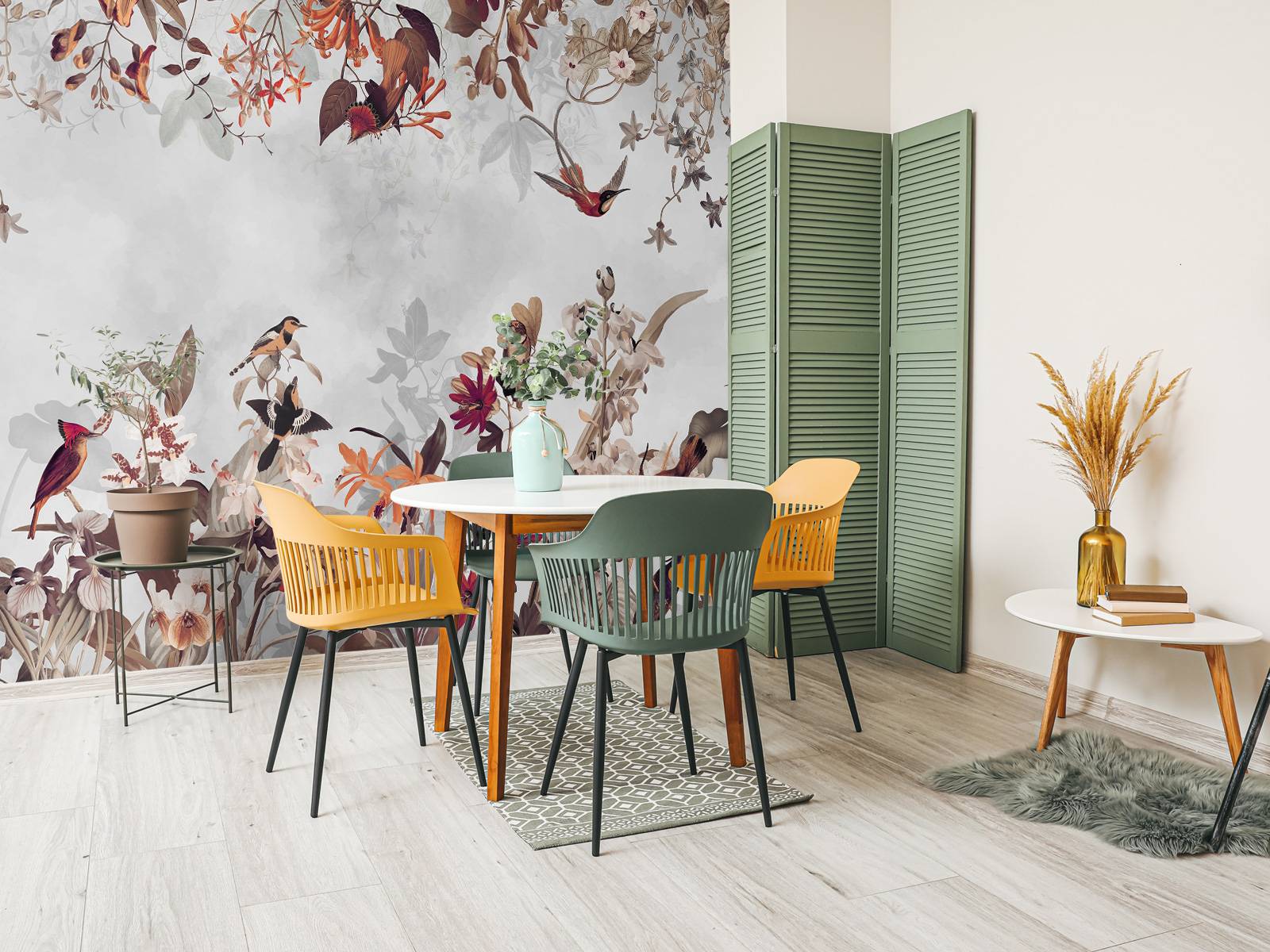 Un design raffiné qui dégage une atmosphère sereine avec une combinaison de nature, d'oiseaux, de fleurs et de couleurs délicates. Parfait pour donner à n’importe quelle pièce un look vibrant mais apaisant.