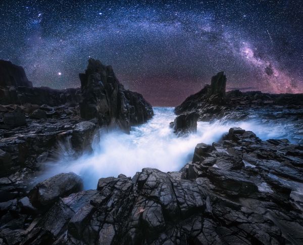 Pont de la Porte de pierre en Papier peint photo. Elle se déroule la nuit avec la salle en arrière-plan.