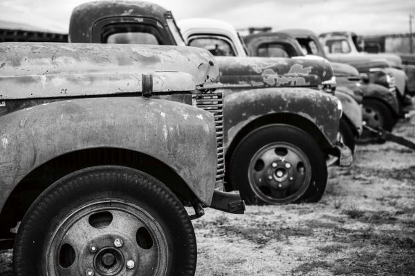 Camionnettes rouillées en noir et blanc