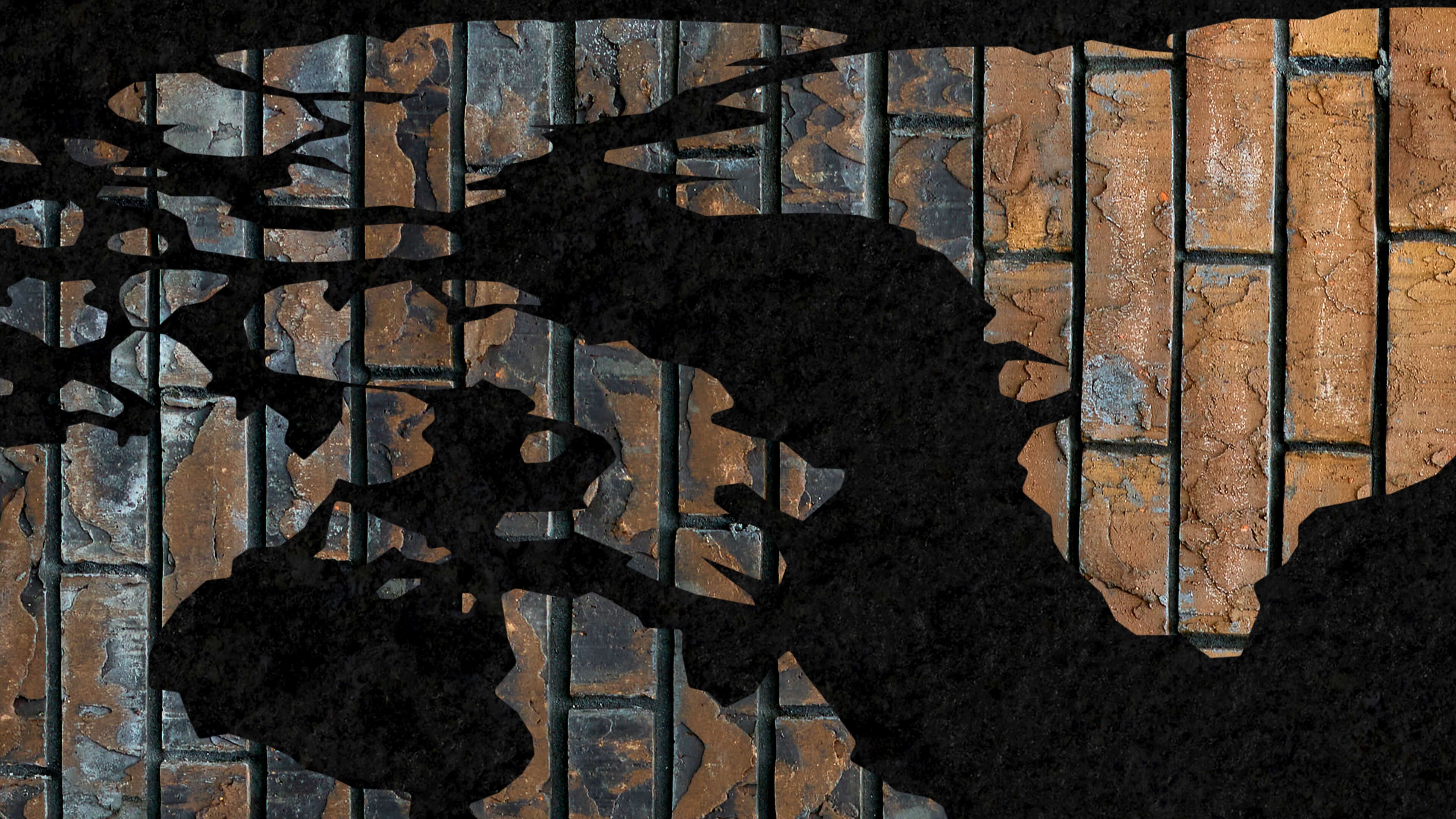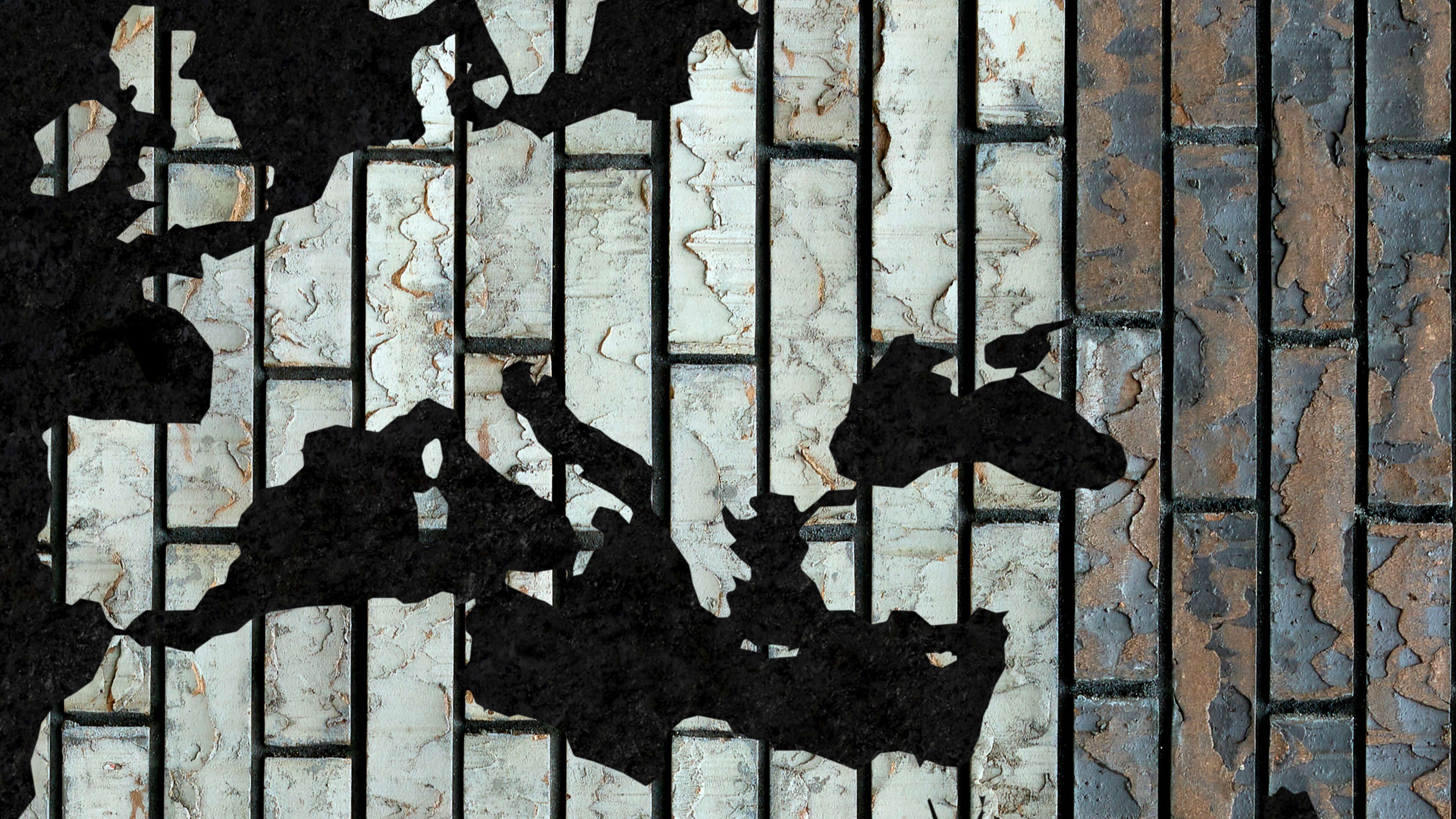 Papier Peint Panoramique Carte du monde avec briques verticales