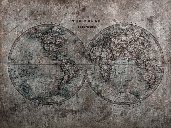Carte du monde avec des nuances de gris sur Papier peint photo. Les nuances de gris donnent à ce papier peint un aspect industriel.