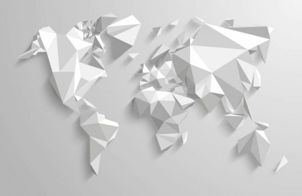 Papier peint moderne avec une carte du monde en 3D avec des formes pliées. Ce papier peint robuste donne une dimension supplémentaire à votre intérieur.