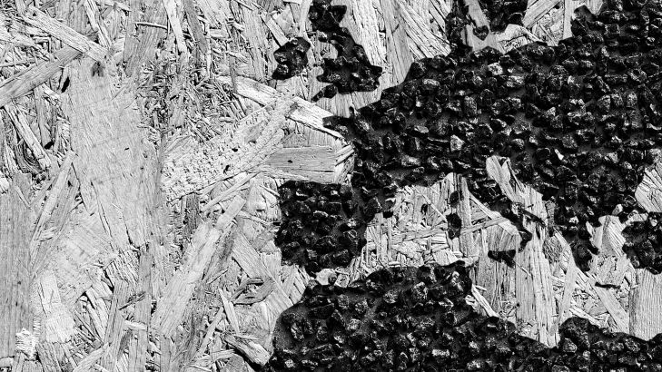 Carte du monde noire sur fond blanc. La carte du monde est imprimée sur du bois pressé, ce qui donne un effet supplémentaire à la photo.