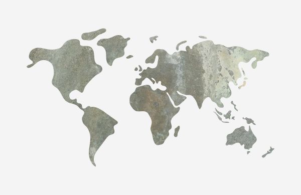 Carte du monde avec une belle structure métallique verte sur un fond blanc. Le fond blanc fait ressortir la carte du monde de façon magnifique.