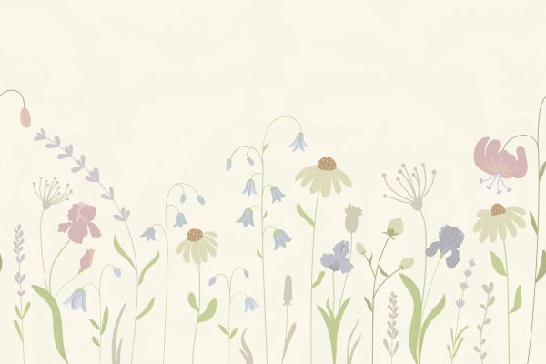 Papier Peint Panoramique Champ de fleurs en hauteur beige, vieux rose, vert et lilas