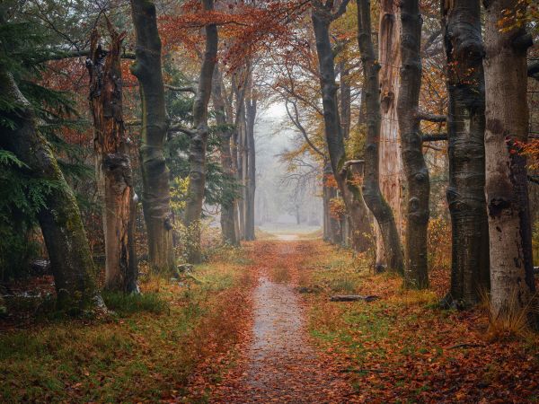 Chemin forestier avec de vieux arbres. Combinez cela dans votre maison.