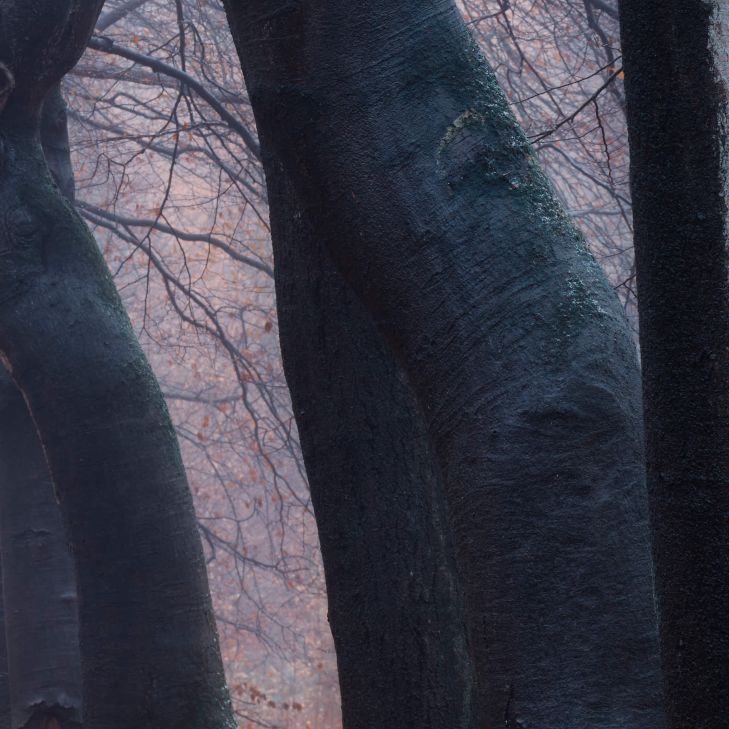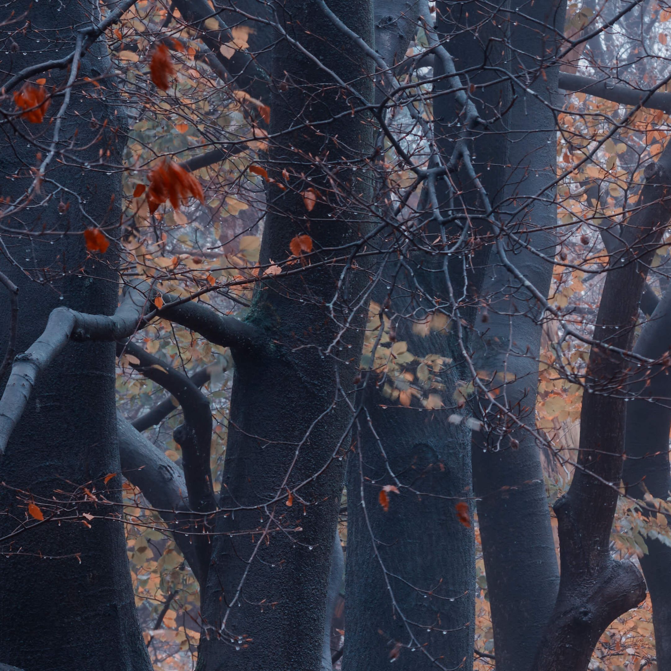 Chemin forestier avec des feuilles par un matin brumeux. Combinez cela dans votre maison.