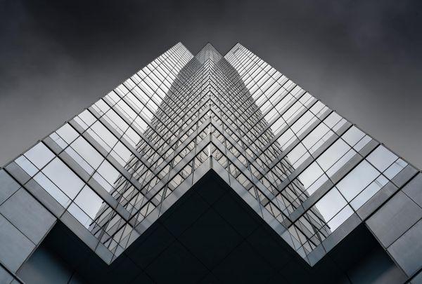 Papier peint de la vue du bas d'un très haut bâtiment. Combinez cela dans le salon.