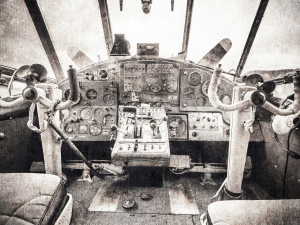 Papier Peint Panoramique Cockpit d'avion en sépia