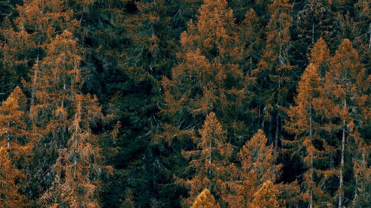 Forêt de pins de couleur orange. La couleur orange chaude crée immédiatement une atmosphère chaleureuse dans votre maison.