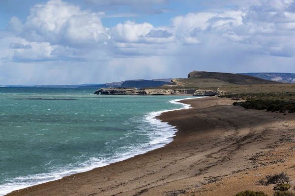 Un paysage côtier impressionnant avec des plages de sable noir, des falaises abruptes et une mer bleu-vert sauvage sous un ciel nuageux.