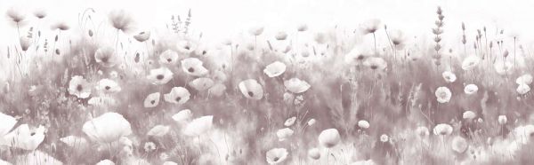 Un champ de fleurs joyeux et rose pâle où les coquelicots, les renoncules et les marguerites sauvages se mêlent de manière ludique. L'arrière-plan pastel avec des coups de pinceau raffinés donne à la composition une allure romantique et rêveuse.