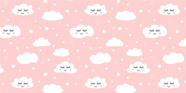Motif de nuages blancs endormis et de petits coeurs sur fond rose