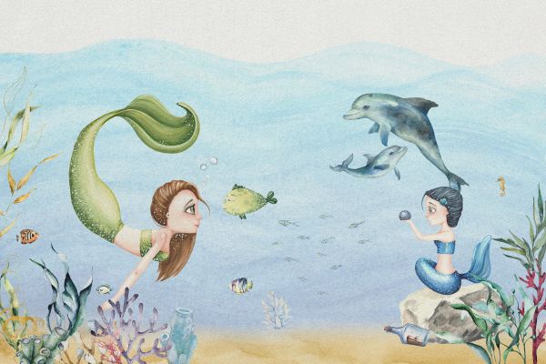 De belles sirènes dans un monde sous-marin coloré. Dauphins, hippocampes et autres animaux tiennent compagnie aux sirènes !
