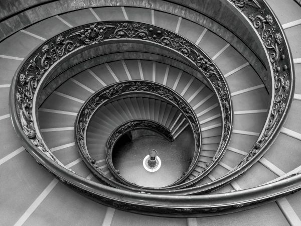 Un escalier à Rome en noir et blanc. Complétez votre chambre avec ce papier peint.