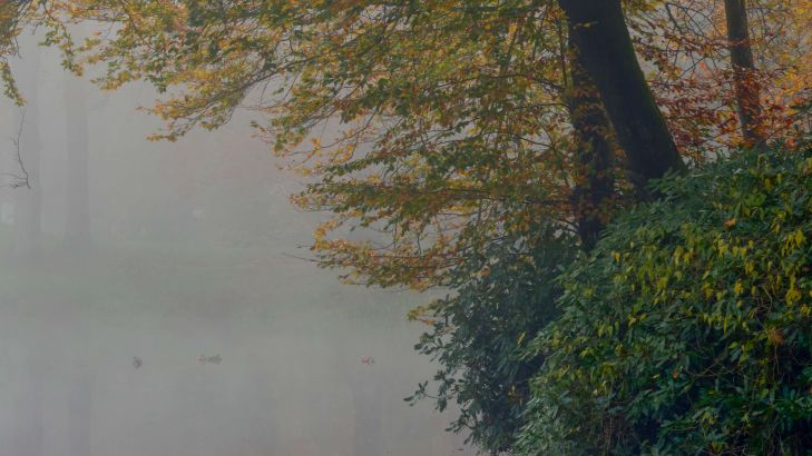 Étang de forêt dans le brouillard pendant l'automne. Faites entrer l'automne dans votre maison d'une manière unique.