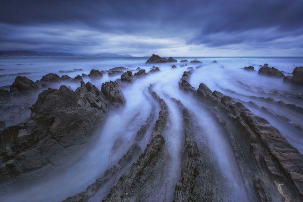 Lignes éternelles sur Papier peint photo. Une couche de nuages entre les montagnes avec des nuages sombres au-dessus.