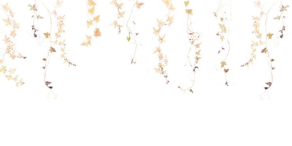 Papier peint botanique représentant une haie de lierre sur un fond clair. Les branches sont suspendues de haut en bas.