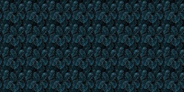 Papier peint de feuilles d'une monstera de couleur bleu canard tropicales. A combiner dans le salon.