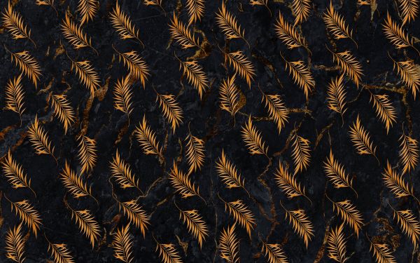 Feuilles d'or tropicales sur un fond de marbre noir. Combinez ce papier peint dans votre maison pour donner encore plus d'ambiance à la pièce.